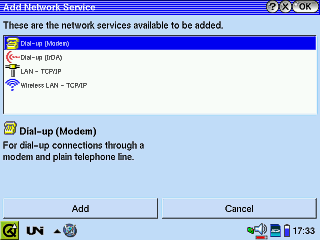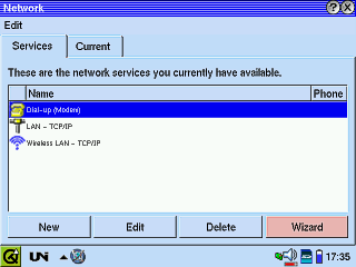 Wenn Sie jetzt ein Modem in den CF-Slot stecken, erscheint in der Taskleiste unten eine kleine Weltkugel und bietet Ihnen die Möglichkeit per Telefon eine Einwahl zu machen. |