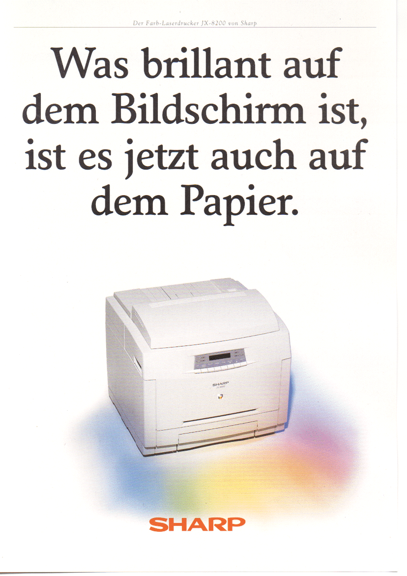 Mehr Farbe ins Leben bringen! Mit 600 DPI Auflösung werden Farbdrucke in Laser-Qualität jetzt echte High-Lights! Beeindruckende Ausdrucke bringt der JX-8200 und das mit 3 Seiten pro Minute in Farbe und 12 Seiten in Schwarz/weiß. Die nötigen Vorraussetzungen sind geschaffen: 24 MB Speicher ab Werk und ein Tonervorrat bei dem an nichts gespart wurde lassen Sie von Anfang an alle Druckwünsche erfüllen.